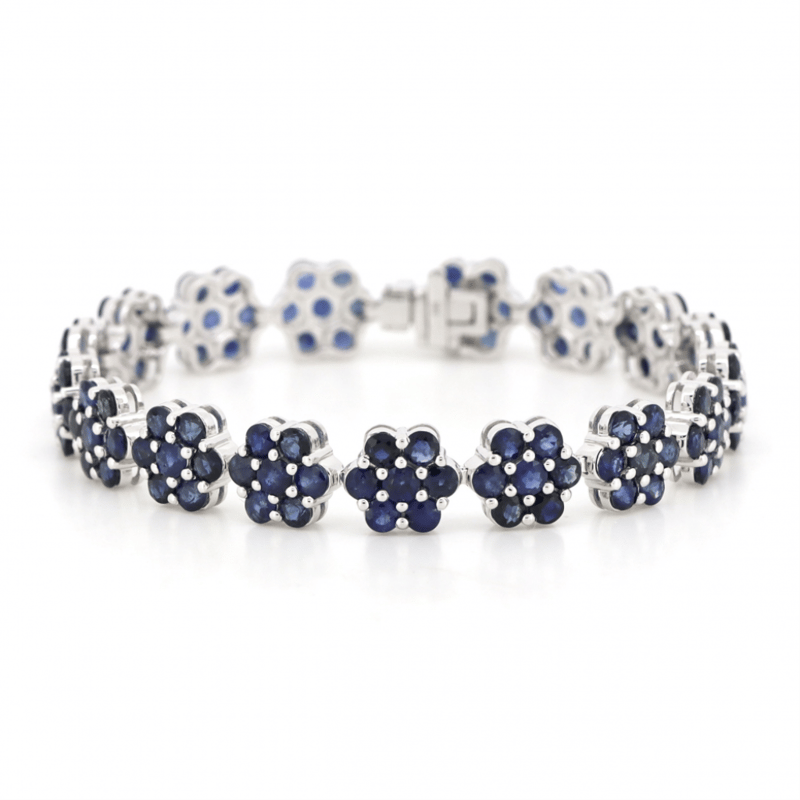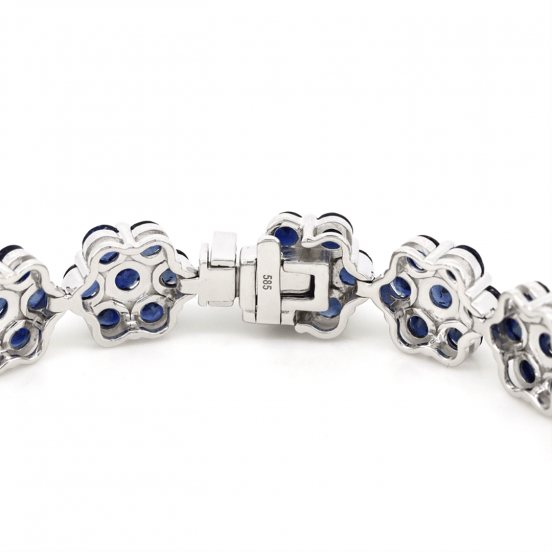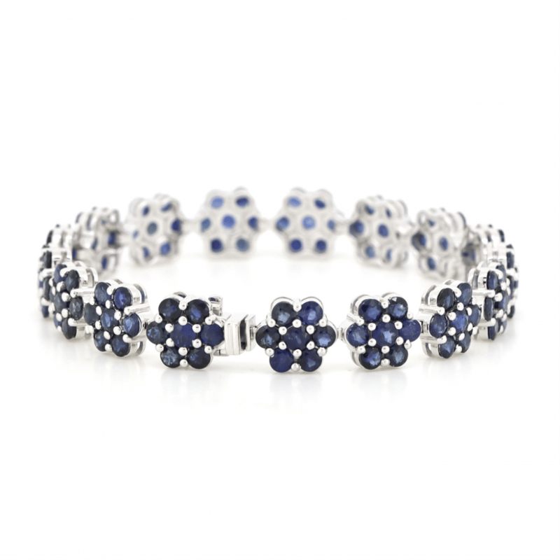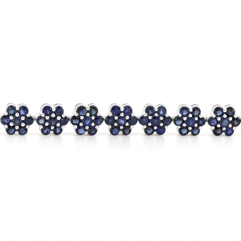 14K WHITE GOLD, BLUE SAPPHIRE, FLORAL BRACELET