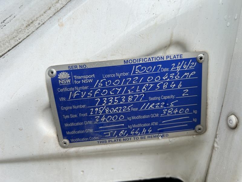 Description/Extras: Air conditioned, Power Steering, Power windows, UHF’s, CD Player, 50-inch LED Lightbar, Hydraulics, Auto tarp, New Eject X Bin valued at $160,000 recently fitted, Emergency Beacon lights, Tool boxes, Spotlights, Hydraulics, 360 Camera, Emergency stop, Isolators, Remote controlled, Very low kms, Ready to Work.
