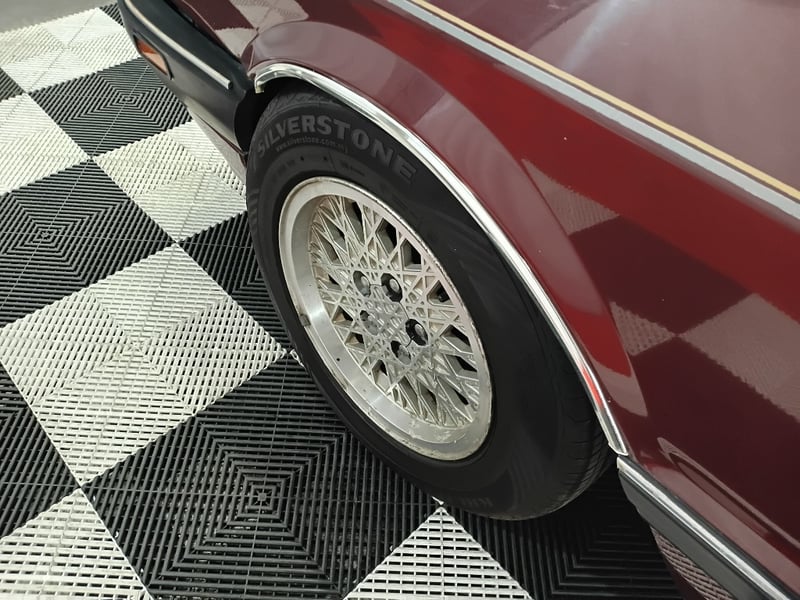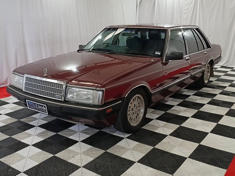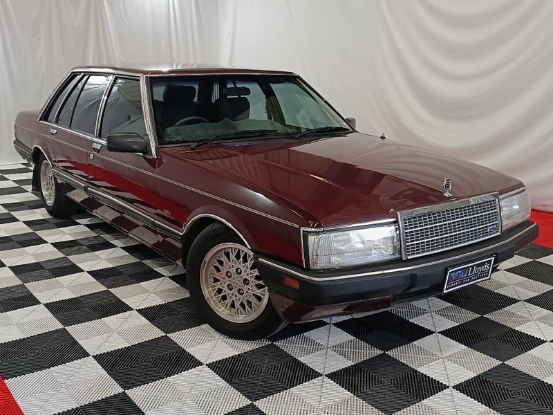 A classic Australian luxury sedan from the late 1980s, finished in Maroon and showing an indicated 228,185 kilometres.
