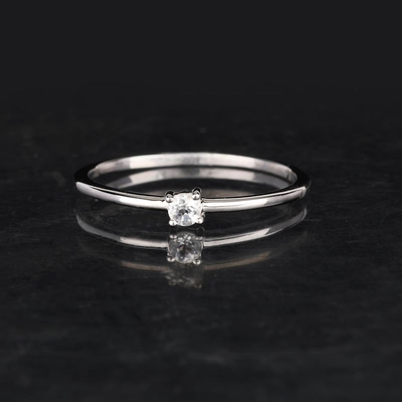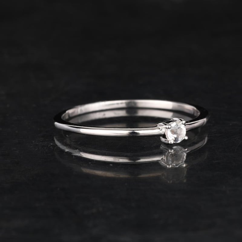 Indulge in the timeless elegance of this stunning ring, featuring a brilliant round white topaz measuring 3.00mm. Set in a luxurious white pan rhodium band, this exquisite piece radiates a captivating shine that perfectly complements the pristine clarity of the gemstone. The white topaz, known for its exceptional brilliance and clarity, captures and reflects light with every movement, creating a dazzling effect that is sure to turn heads.