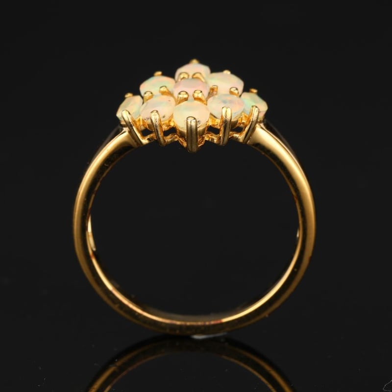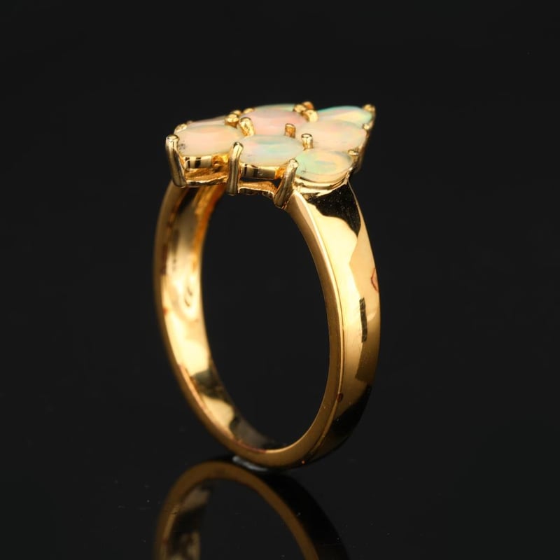 Ethereal Ethiopian Opal Ring CollectionIndulge in the enchanting allure of this exquisite ring collection featuring a harmonious blend of Ethiopian opals. This stunning ensemble showcases seven oval-cut opals, each measuring 5x3mm, that radiate a mesmerizing play of colors, reminiscent of a kaleidoscope of nature’s finest gems. Their vibrant hues, ranging from ethereal blues to fiery reds and soft greens, dance with light, creating a captivating spectacle that is sure to leave onlookers spellbound.Complementing these oval beauties are two elegantly shaped marquise-cut opals, measuring 5x2.50mm, adding a touch of sophistication and grace to the set. Their elongated form enhances the opals’ natural brilliance, creating an illusion of movement and fluidity. Perfect for those who seek to express their individuality, this collection embodies both timeless elegance and modern artistry.Whether worn as a statement piece or gifted to a loved one, these Ethiopian opals are more than just gemstones; they are a celebration of the earth’s most exquisite treasures. Don’t miss the opportunity to own this rare and luxurious collection that promises to elevate any jewelry ensemble to extraordinary heights.