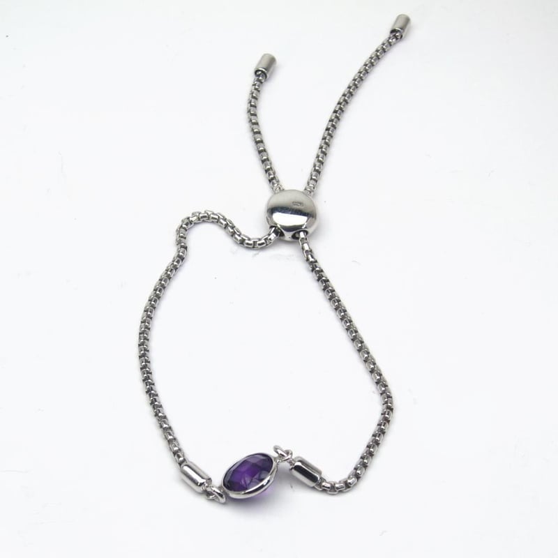 Indulge in the enchanting allure of this stunning bracelet, meticulously crafted to showcase a single, resplendent 8.00mm round African Amethyst Briolite. Each bead is a masterpiece, radiating a captivating violet hue that dances with light, evoking the serene beauty of twilight skies over the African savanna.