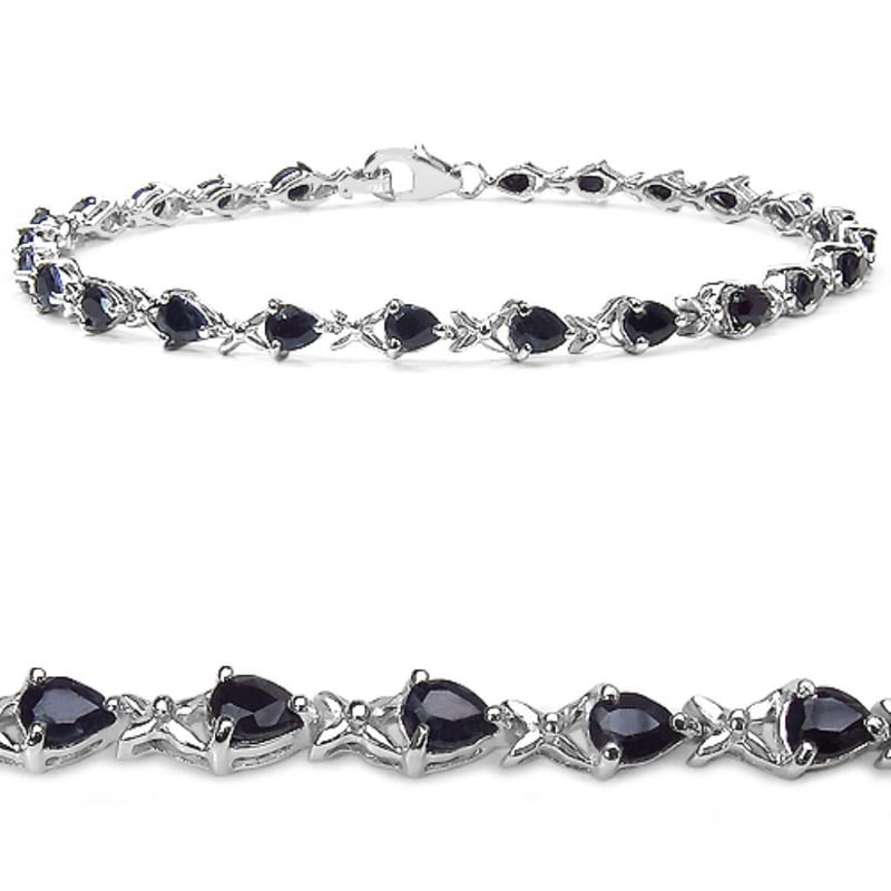 Exquisite Black Sapphire Pears Bracelet - 24 Stunning GemsIndulge in the allure of elegance with this captivating Black Sapphire Pears Bracelet, featuring 24 meticulously selected pear-shaped sapphires, each measuring 4x3mm. This remarkable piece exudes sophistication and charm, with its deep, velvety black hues that catch the light and create an enchanting play of shimmer.Crafted with precision, the sapphires are expertly set in a delicate yet durable framework, ensuring that each gem is showcased to its fullest potential. The bracelet effortlessly transitions from day to night, making it the perfect accessory for any occasion, whether it be a formal gala or a casual outing.The rich, dark tones of the sapphires evoke a sense of mystery and refinement, harmonizing beautifully with a variety of skin tones and styles. This timeless piece not only enhances your jewelry collection but also serves as a statement of your exquisite taste.Don’t miss this exclusive opportunity to own a piece that embodies luxury and grace. Elevate your style with this enchanting Black Sapphire Pears Bracelet, a true masterpiece that promises to be cherished for generations to come.