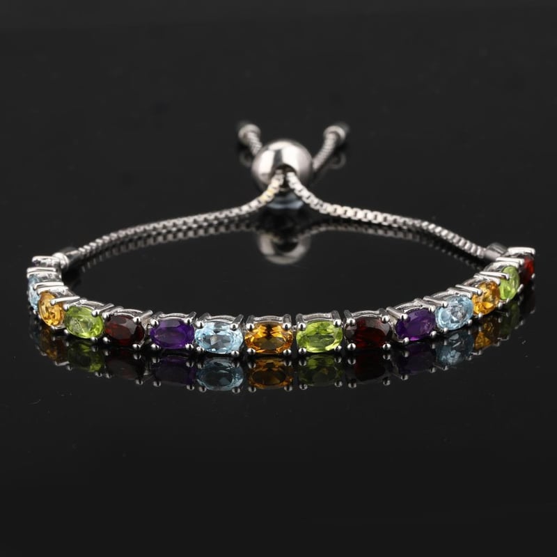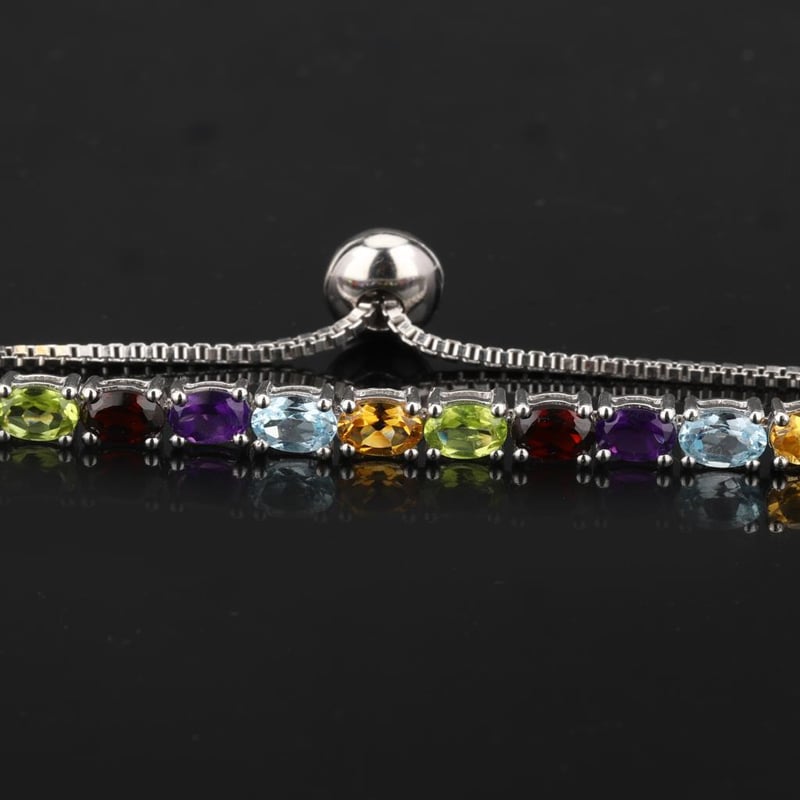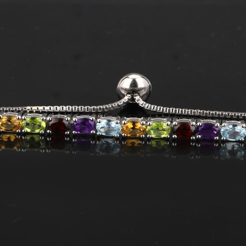 Radiant Harmony: Multi-Gemstone Bracelet CollectionStep into a world of vibrant elegance with this exquisite multi-gemstone bracelet collection, featuring a symphony of colors and brilliance. Each bracelet is adorned with a trio of stunning gemstones: African Amethyst, Blue Topaz, Citrine, Garnet, and Peridot, all meticulously crafted in elegant oval cuts measuring 6x4mm.The deep, regal hues of African Amethyst evoke a sense of luxury, while the serene blues of Blue Topaz add a refreshing touch, reminiscent of tranquil ocean waves. Citrine brings a burst of sunshine with its warm golden tones, harmonizing beautifully with the rich red of Garnet, a gem symbolizing passion and vitality. Finally, the vibrant green of Peridot captures the essence of nature’s lush beauty, adding a refreshing contrast to this stunning array.Designed for versatility, this bracelet can effortlessly transition from day to night, making it the perfect accessory for any occasion. Each gemstone is lovingly set to ensure maximum brilliance, allowing them to dance in the light with every movement. Whether worn alone for a minimalist statement or stacked with other favorites for a bold, bohemian look, this unique collection promises to be a cherished addition to any jewelry lover's ensemble.Embrace the allure of this handcrafted multi-gemstone bracelet collection and let your style shine with a kaleidoscope of colors that celebrate individuality and elegance. Don't miss this opportunity to own a piece of artistry that embodies both luxury and nature's finest treasures.