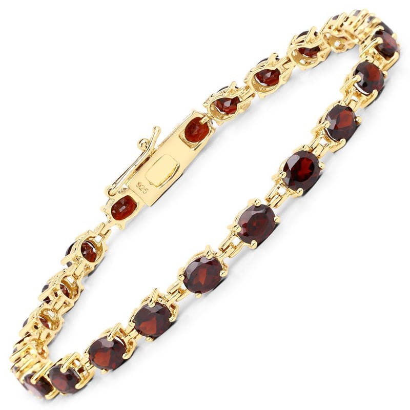 Indulge in the enchanting allure of this breathtaking bracelet, featuring 24 meticulously set oval garnets, each measuring 5x4mm. A symphony of deep red hues, these gems exude a warmth and richness that capture the essence of passion and vitality.