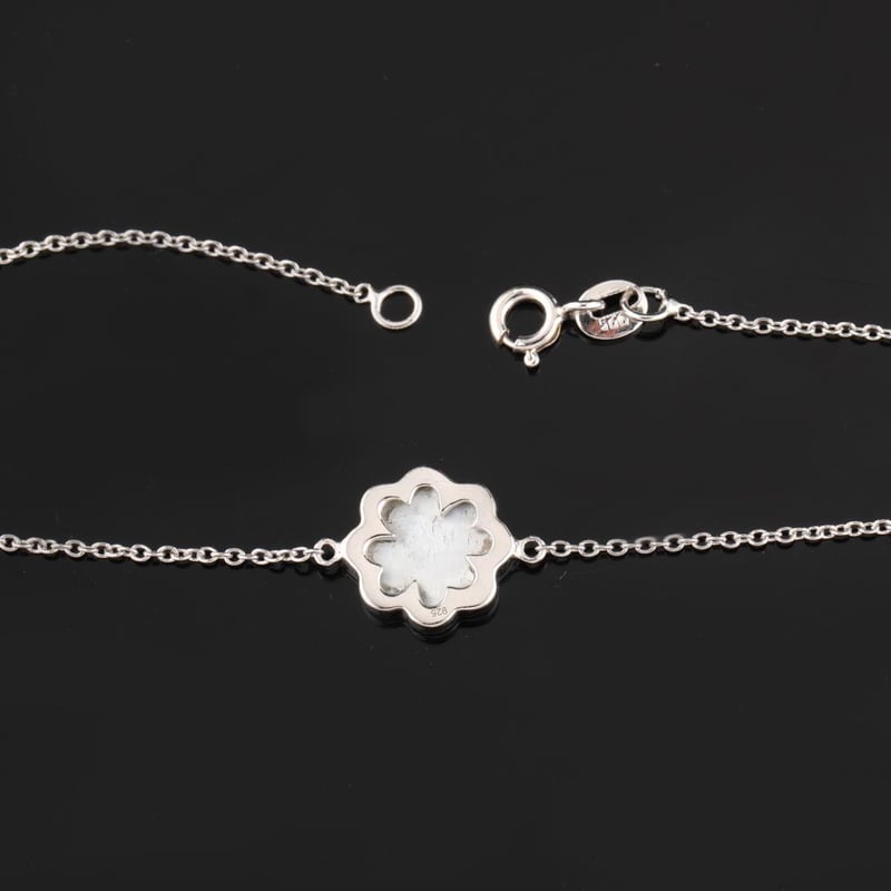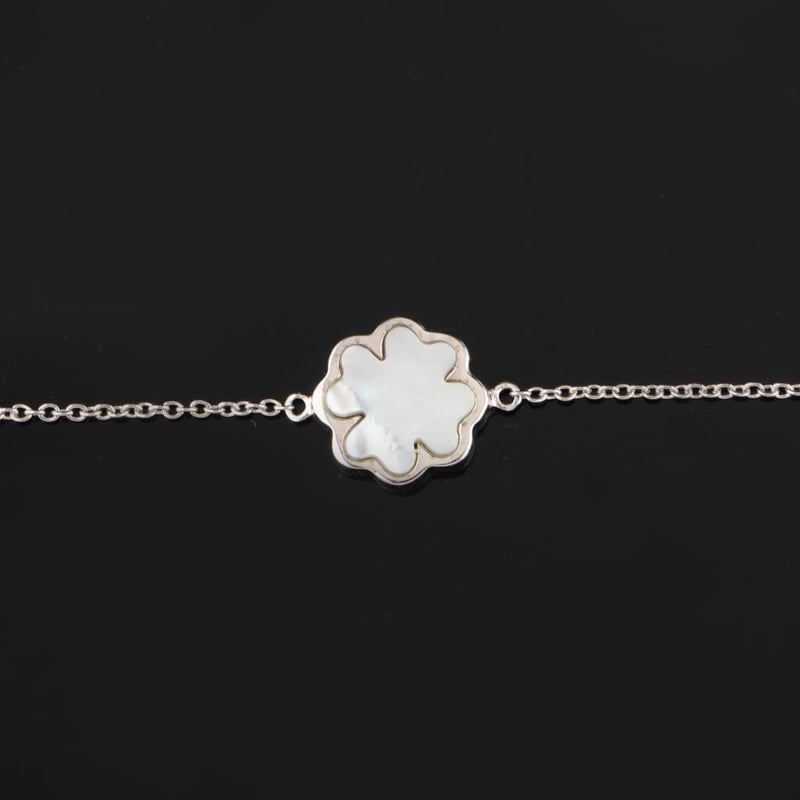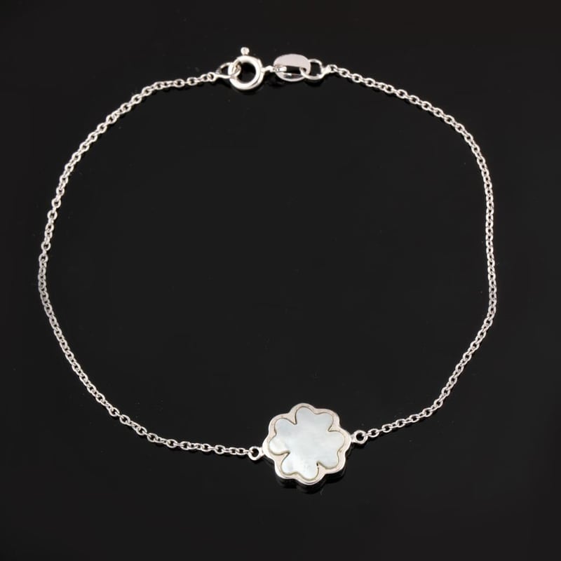 Elegance in Every Layer: Mother of Pearl Clover BraceletDiscover the exquisite charm of our Mother of Pearl Plate Clover Bracelet, a stunning piece that harmoniously combines nature's beauty with artisanal craftsmanship. This luxurious bracelet features a delicate 10x10mm clover motif, beautifully crafted from lustrous mother of pearl, which shimmers with iridescent hues that dance with every movement.The clover, a symbol of good fortune and prosperity, adds a meaningful touch to this elegant accessory, making it perfect for both everyday wear and special occasions. Each bracelet is designed with a refined simplicity that allows the natural beauty of the mother of pearl to take center stage, ensuring that it complements any outfit with grace.Whether as a treat for yourself or a thoughtful gift for a loved one, this bracelet encapsulates timeless elegance and a touch of whimsy, inviting admiration from all who behold it. Elevate your jewelry collection with this enchanting piece, and let the allure of the Mother of Pearl Clover Bracelet bring a touch of luck and sophistication to your ensemble.