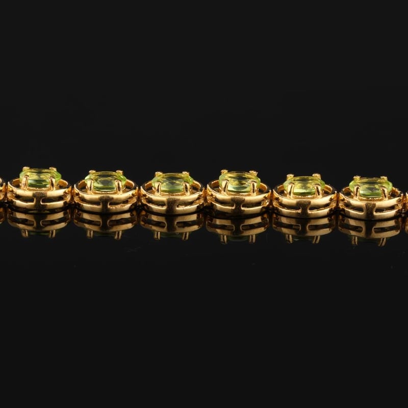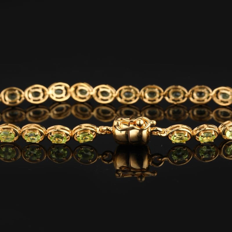 Indulge in the vibrant allure of our Exquisite Peridot Harmony Bracelet, a masterpiece that seamlessly blends elegance and sophistication. This enchanting piece showcases 27 dazzling oval peridots, each measuring 4x3mm, radiating a rich, verdant hue that evokes the essence of lush greenery and sunlight.