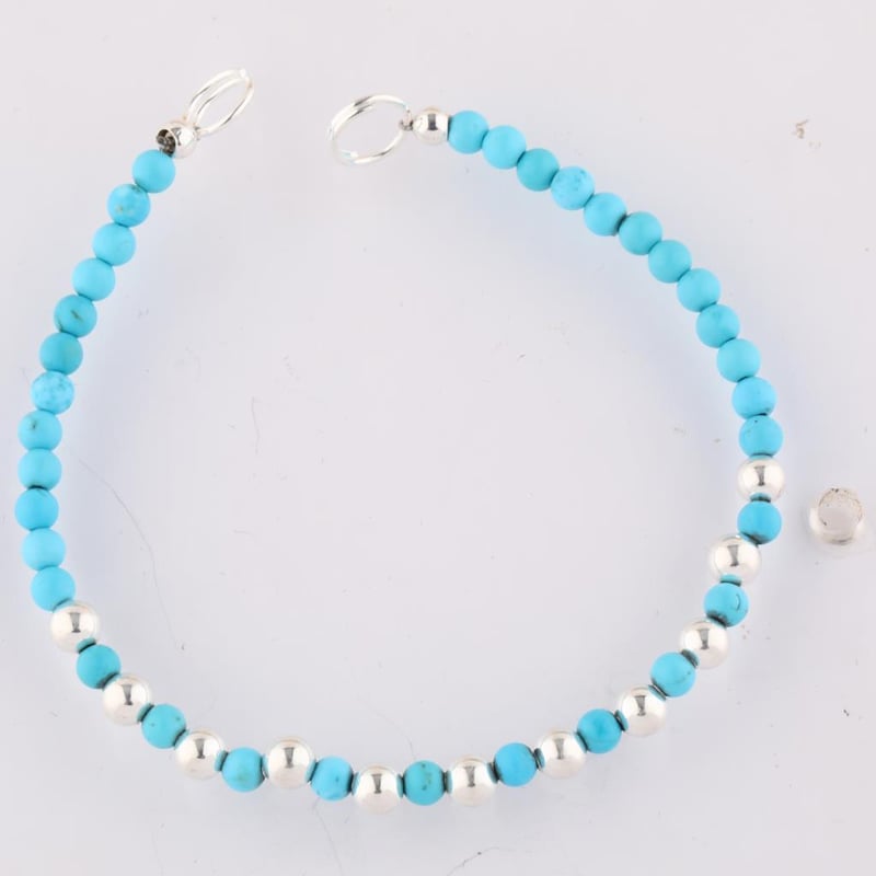 Indulge in the serene beauty of our exquisite Howlite Turquoise Bracelet, a true testament to sophistication and style. This luxurious piece features 34 meticulously selected 3.00mm full drill Howlite turquoise beads, each radiating a calming hue reminiscent of tranquil ocean waves. Complementing these vibrant stones are 13 elegantly crafted plain metal balls—11 pieces at 4.00mm and 2 pieces at 3.00mm—adding a touch of contemporary allure to the classic design.