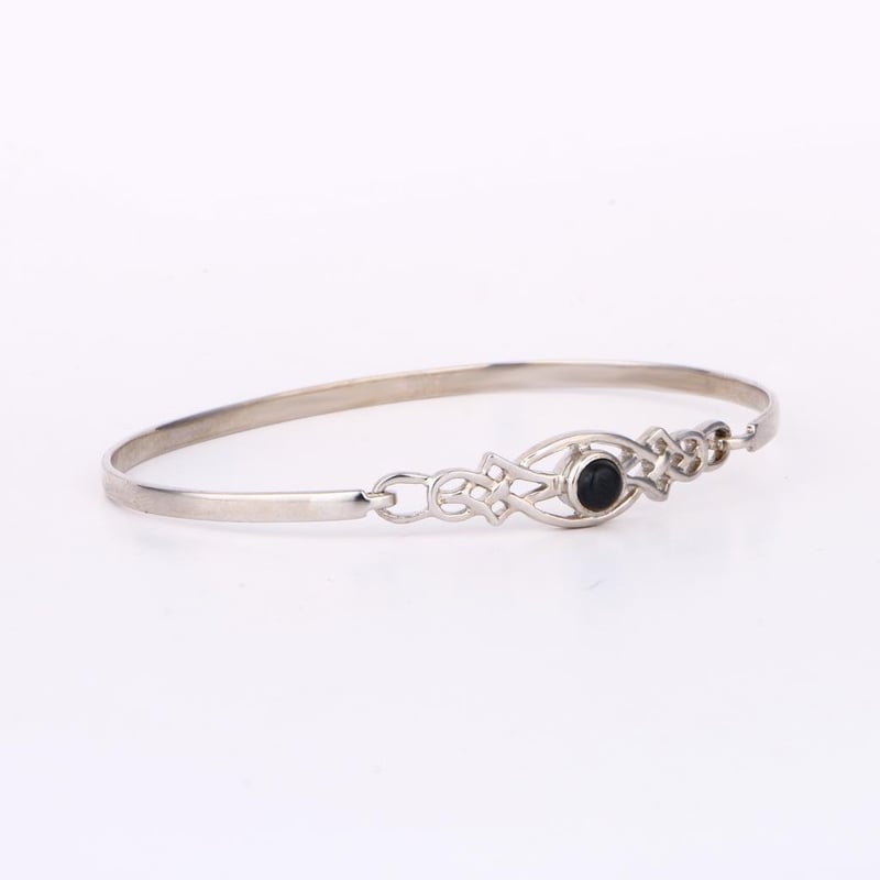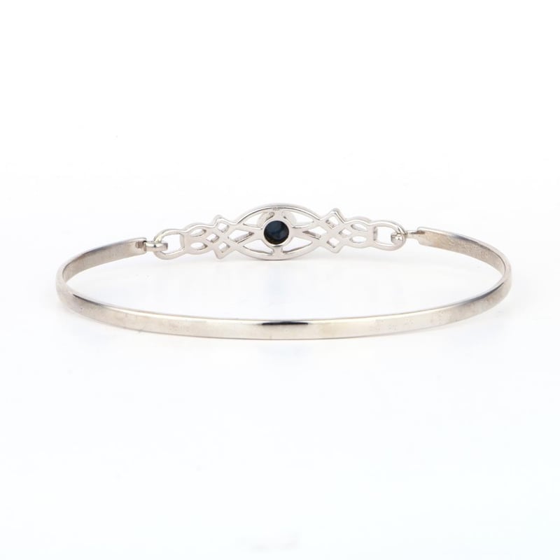 Elegant Black Sapphire Bangle - A Timeless TreasureImmerse yourself in luxury with this exquisite bangle, showcasing a stunning black sapphire cabochon of 5.00mm. This captivating piece is designed with a pipe width of 4.00mm and a thickness of 1.40mm, ensuring a comfortable yet striking fit on your wrist. The deep, velvety hue of the black sapphire exudes sophistication, making it a perfect companion for both day and evening attire. Its smooth, rounded surface reflects light with a subtle allure, while the sleek, modern design adds an air of elegance to any jewelry collection. Whether worn alone for a minimalist look or stacked with other bangles for a bold statement, this piece is a versatile addition that embodies timeless style and refined taste. Elevate your accessory game with this stunning black sapphire bangle, a true testament to luxury and craftsmanship. Don’t miss the opportunity to make it yours at the auction!