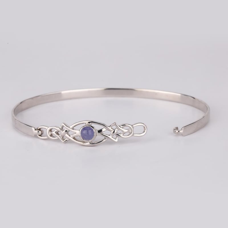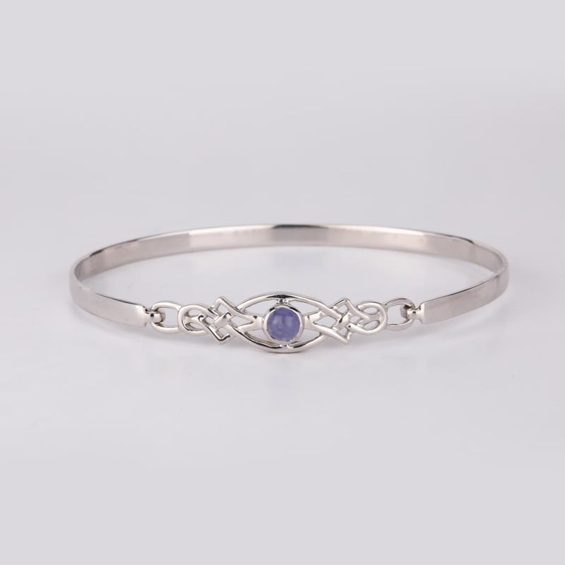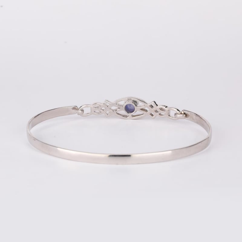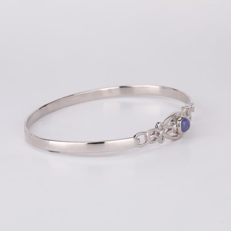 Elevate Your Elegance: Exquisite Tanzanite BangleIndulge in the captivating charm of this stunning Tanzanite bangle, a true masterpiece that embodies luxury and sophistication. Crafted with meticulous attention to detail, this bangle features a flawless round Tanzanite cabochon, measuring 5.00mm, which exudes a deep, sumptuous hue reminiscent of twilight skies. The bangle’s unique flat-bottom design ensures a comfortable fit while making a striking statement on the wrist. With a pipe width of 4.00mm and a thickness of 1.40mm, it boasts a substantial presence while maintaining an air of delicacy. Ranging in height from 2.75mm to 3.25mm, this piece captures the light beautifully, highlighting the mesmerizing violet-blue tones of the Tanzanite that will leave onlookers enchanted.Whether worn alone for an understated elegance or stacked with other pieces for a bold look, this bangle is perfect for any occasion. Embrace the allure of this exquisite Tanzanite bangle and let your style shine with a touch of grace and luxury. Don’t miss the opportunity to own this timeless piece that transcends trends and celebrates the beauty of fine jewelry.