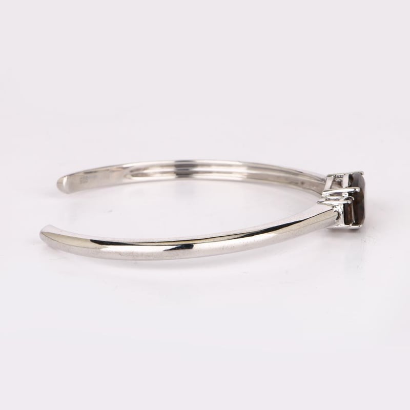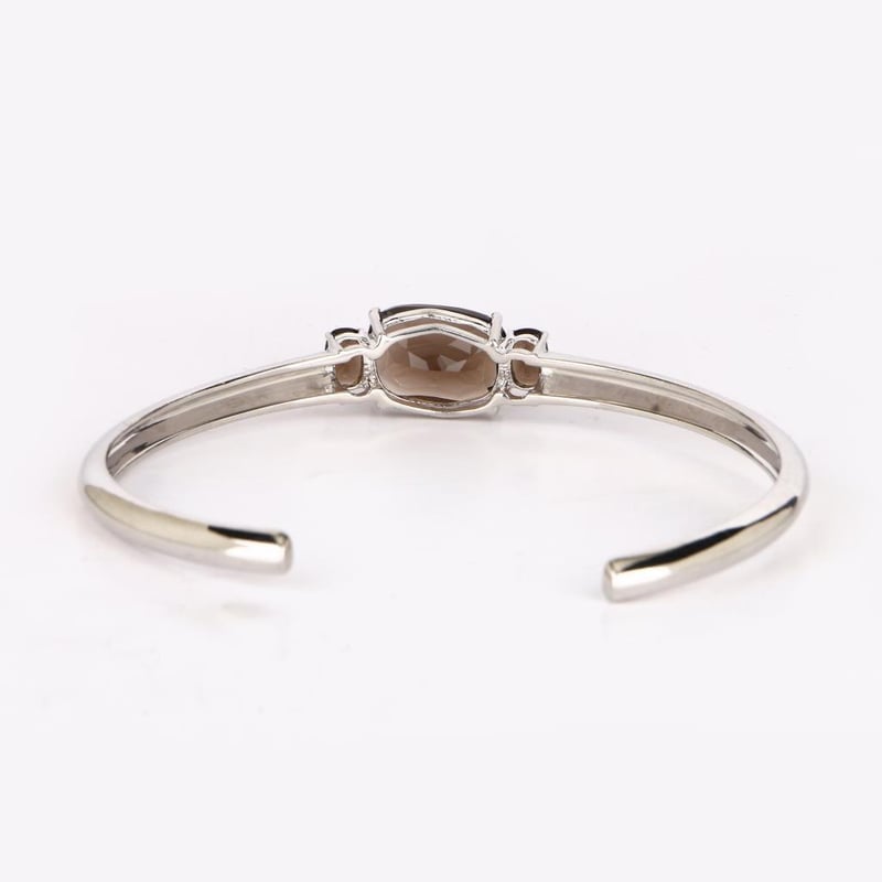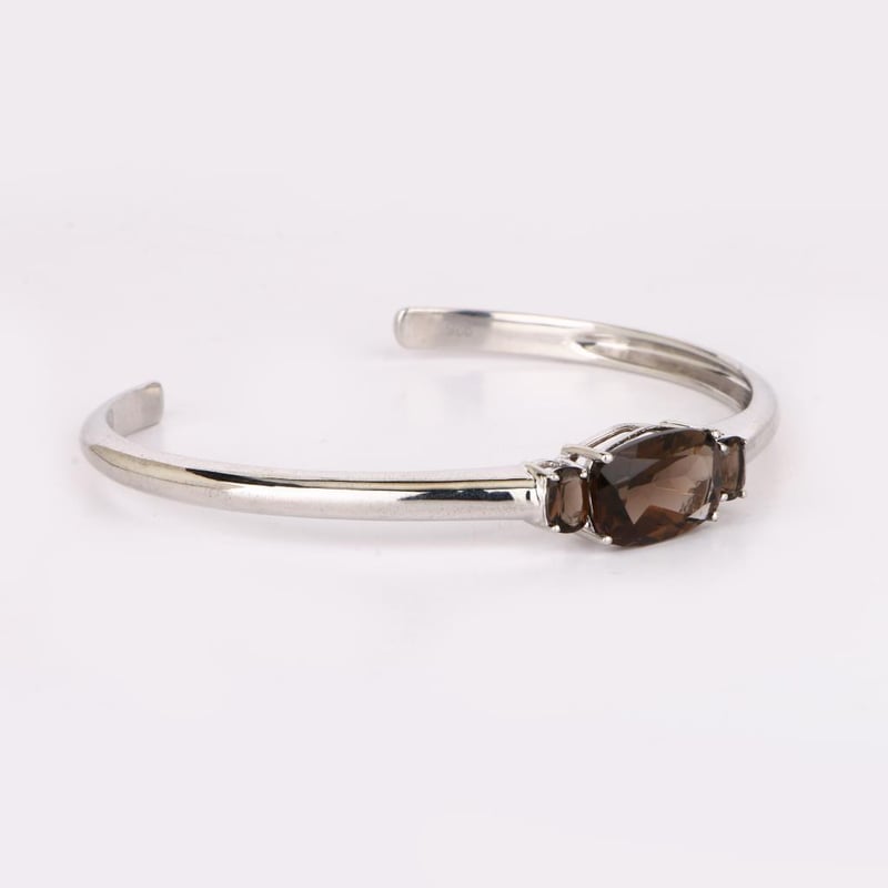 Elegant Smoky Quartz Bangle and Accent Stones SetIndulge in the timeless allure of this exquisite jewelry set, featuring a stunning bangle adorned with a captivating smoky quartz cushion gemstone, measuring an impressive 14x10mm. This centerpiece gemstone, with its rich, earthy tones, exudes sophistication while adding a touch of mystery to your ensemble. Its smooth, polished surface reflects light beautifully, showcasing the stone's unique depth and character.Accompanying the bangle are two dainty smoky quartz cushion stones, each measuring 6x4mm. These accent pieces are perfect for adding a subtle sparkle to any outfit or can be used to enhance your own bespoke jewelry creations. The harmonious blend of these smoky quartz gems captures the essence of elegance and versatility, making them an undeniable treasure for any jewelry aficionado.Crafted with meticulous attention to detail, this set is not just a statement piece; it is an embodiment of artistry and luxury. Elevate your collection and let these smoky quartz beauties become the centerpiece of your next special occasion. Don’t miss the opportunity to own this exquisite set that celebrates both nature's beauty and human craftsmanship.