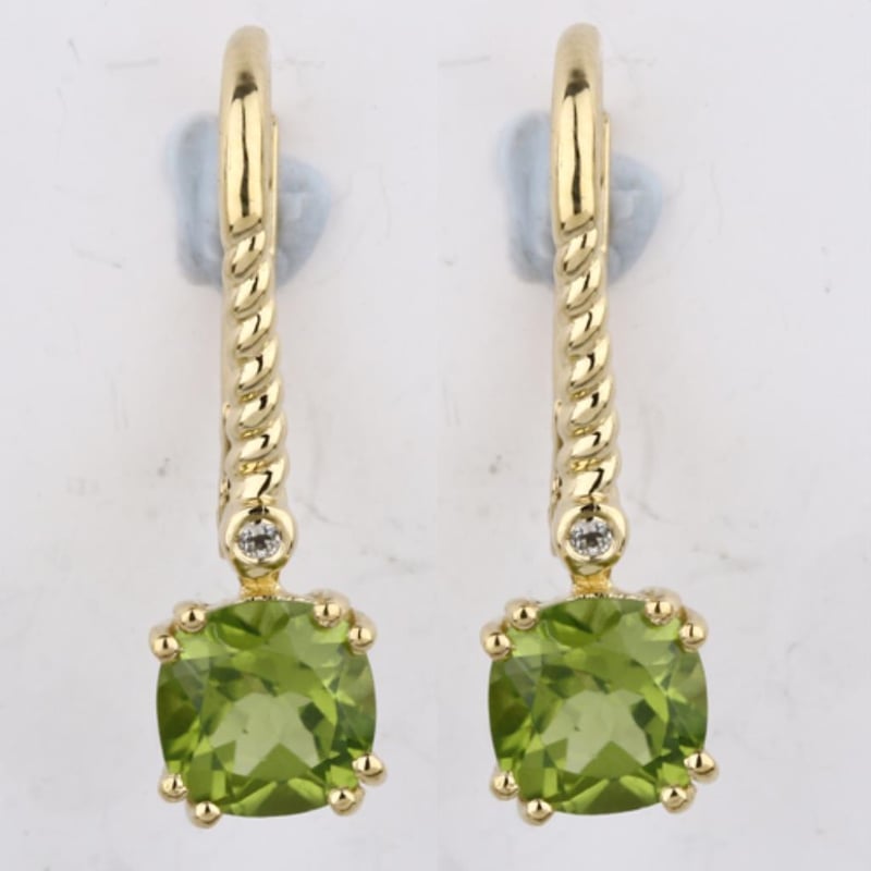 Ethereal Elegance: Peridot and White Topaz EarringsIndulge in the exquisite charm of these stunning earrings, featuring two radiant cushion-cut Peridot gemstones, each measuring 6.00mm. The vibrant green hue of the Peridot symbolizes renewal and vitality, capturing the essence of nature's beauty and infusing it with a touch of elegance. Complementing these captivating gems are four delicate round White Topaz stones, each measuring 1.20mm, which add a brilliant sparkle that dances with every movement.Crafted with meticulous attention to detail, these earrings are the perfect accessory for any occasion—be it a sophisticated evening gala or a casual brunch with friends. The harmonious blend of lush Peridot and sparkling White Topaz creates a striking contrast that is sure to draw admiration and compliments. Elevate your jewelry collection with these enchanting earrings, a timeless treasure that embodies grace and luxury. Don't miss the opportunity to make these stunning pieces yours at auction.