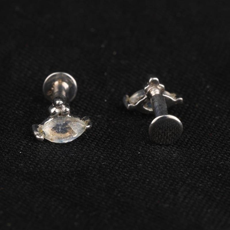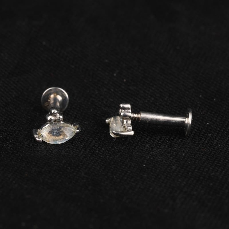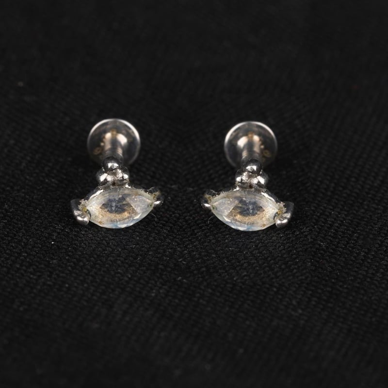 Ethereal Elegance: White Rainbow Moonstone Marquise Earrings with Silver AccentsDiscover a sublime fusion of nature's beauty and artisanal craftsmanship with these exquisite half-pair earrings featuring mesmerizing White Rainbow Moonstone cabochons. Each marquise-shaped stone, measuring 4x2mm, radiates a soft glow, reminiscent of moonlight dancing on a tranquil lake. The enchanting play of colors within the moonstone captivates the eye, evoking a sense of celestial wonder.Complementing the ethereal stones are three lustrous silver beads, each measuring 1.50mm, which add a delicate touch of sophistication to the design. The understated elegance of these earrings makes them a versatile accessory, perfect for both casual outings and elegant soirées.Embrace the charm of these enchanting earrings, where every glance reveals a new facet of their beauty, inviting admiration and intrigue. A must-have addition for any jewelry connoisseur, these captivating pieces are poised to elevate your collection to celestial heights.
