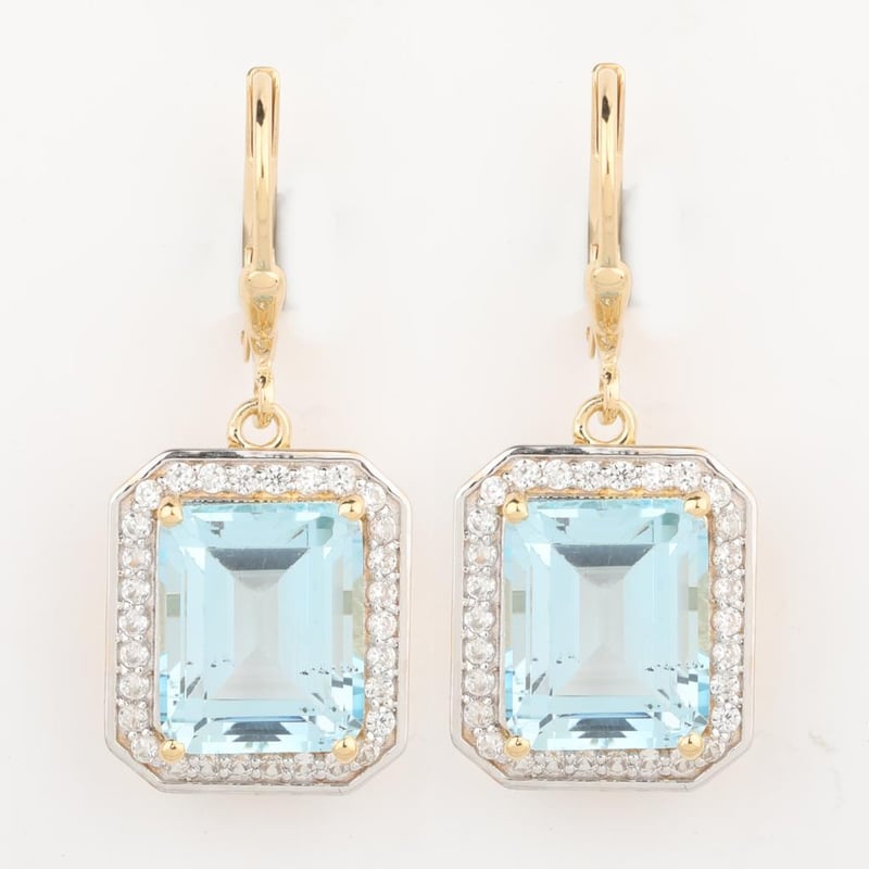 Mesmerizing Blue Topaz Octagon Earrings with Dazzling White Zircon AccentsStep into a world of elegance with these exquisite earrings, featuring stunning blue topaz octagons measuring 11x9mm, artfully set to capture the light with every movement. Each piece showcases two magnificent blue topaz stones, chosen not only for their vibrant hue reminiscent of a tranquil ocean but also for their remarkable clarity—a true testament to nature’s artistry.Surrounding the blue topaz are 60 meticulously placed round white zircons, each measuring 1.30mm, that sparkle with a brilliance that rivals the stars. The contrasting colors of the deep blue and brilliant white create a striking visual harmony, while the octagonal cut of the topaz adds a modern twist to an otherwise classic design.These earrings are more than just accessories; they are a statement of sophistication and grace, perfect for an elegant evening out or a special occasion. Slip them on and let their radiant beauty transform your look, making you the center of attention wherever you go. Indulge in luxury and allow these earrings to elevate your jewelry collection to new heights.
