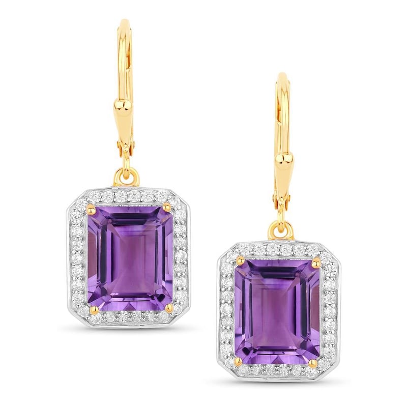 Elegant Brazilian Amethyst Octagon Earrings with White Zircon Accents - 2 PcsIndulge in the captivating beauty of these exquisite earrings, featuring stunning Brazilian amethyst octagons measuring 11x9mm. Each earring showcases a brilliant display of deep violet hues, expertly cut to enhance the stone's innate brilliance and clarity. The elegant octagonal shape adds a modern twist to the classic allure of amethyst, making these pieces a perfect blend of sophistication and contemporary design.Surrounding each amethyst are 30 sparkling round white zircons, totaling 60 exquisite stones, that catch the light with every movement. These dazzling accents elevate the earrings, creating a stunning contrast that highlights the rich color of the amethyst while adding an enchanting sparkle that is sure to turn heads. Crafted with meticulous attention to detail, these earrings are not just a piece of jewelry; they are a statement of elegance and refinement. Ideal for both special occasions and everyday wear, this remarkable pair will elevate any ensemble, making you feel truly radiant. Don’t miss this opportunity to own a piece of luxury that embodies both timeless beauty and modern style.
