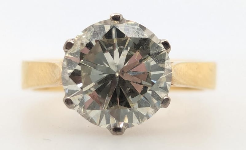 Featuring 3.63Ct Round Modern Brilliant Cut Diamond Being Held In A Hand Pierced 6 Claw White Gold Coronet.