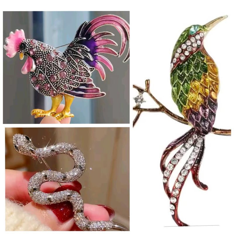3 X MULTICOLOR RHINESTONE CRYSTAL BROOCHES BIRD ROOSTER SNAKE Condition: Good - Refer Images 0162996+28FC