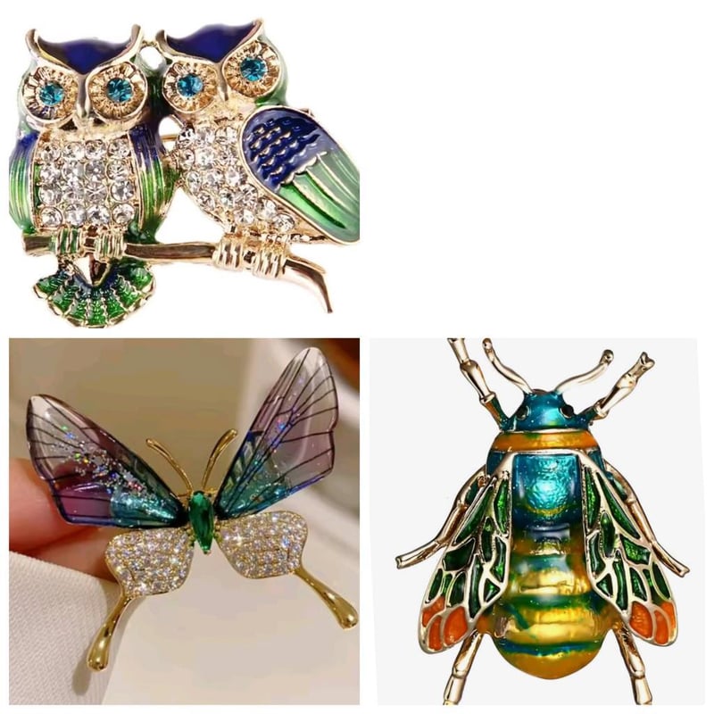 3 X MULTICOLOUR RHINESTONE CRYSTALS BROOCHES OWL BUTTERFLY AND FLY Condition: Good - Refer Images 0162996+30FC