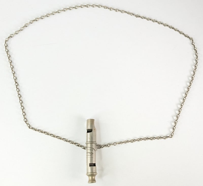 EARLY MID 1800S DOUBLE ENDED SHIPS GUNNERY OFFICERS WHISTLE MAKER MARKED WITH NECK CHAINItem Size: Height: 10cm, Width: 5cm, Depth: 1cm, Weight: 1KgCondition: Good - Refer To ImagesFC1B163013+242