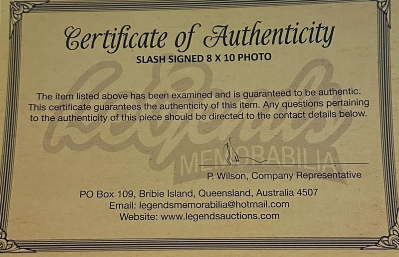 Slash Personally Signed 8 X 10 Photo. Saul Hudson, Known Professionally As Slash, Is A British-American Musician, Best Known As The Lead Guitarist Of The Hard Rock Band Guns N' Roses. The Item Is Accompanied By A Certificate Of Authenticity.