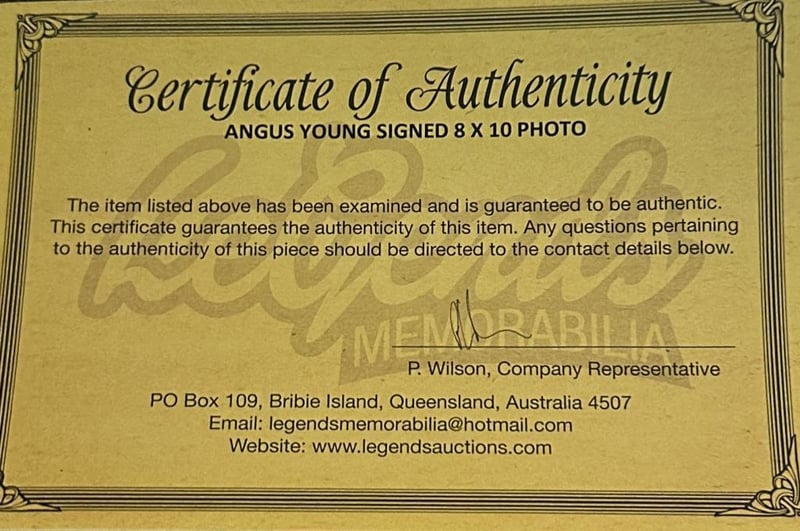 ACDC'S ANGUS YOUNG SIGNED CONCERT PHOTO Angus Young Personally Signed 8 X 10 Photo. Angus Young Is An Australian Musician, Best Known As The Co-Founder, Lead Guitarist, Songwriter, And The Only Continuous Member Of The Hard Rock Band Ac/Dc. The Item Is Accompanied By A Certificate Of Authenticity. Condition: Good - Refer To Images 585045+52