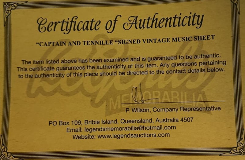 CAPTAIN AND TENNILLE SIGNED MUSIC SHEET