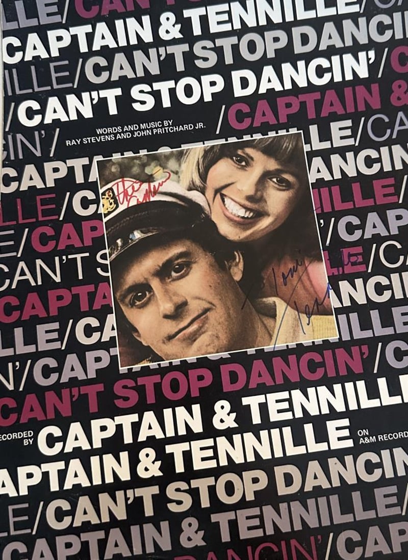 Captain And Tennille Personally Signed Music Sheet "Can'T Stop Dancin". Captain & Tennille Were An American Recording Duo Whose Primary Success Occurred In The 1970S. The Husband-And-Wife Team Were "Captain" Daryl Dragon And Toni Tennille. The Item Is Accompanied By A Certificate Of Authenticity.