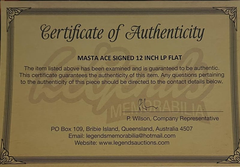 Masta Ace Personally Signed 12 Inch Lp Flat. Masta Ace Is An American Rapper And Record Producer From New York City. Ace Was The Lead Member Of Mr Magic'S Hip Hop Collective Juice Crew. The Item Is Accompanied By A Certificate Of Authenticity.