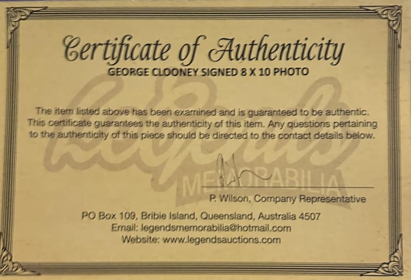 GEORGE CLOONEY SIGNED "BATMAN" PHOTO George Clooney Personally Signed 8 X 10 "Batman" Photo. George Clooney Is An American Actor And Filmmaker. Known For His Leading Man Roles On Screen In Both Blockbuster And Independent Films. The Item Is Accompanied By A Certificate Of Authenticity. Condition: Good - Refer To Images 585045+66
