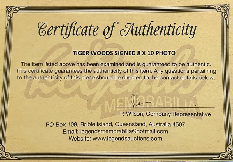 TIGER WOODS SIGNED GOLF PHOTO Tiger Woods Personally Signed 8 X 10 Photo. Tiger Woods Is An American Professional Golfer. Woods Tied For First In Pga Tour Wins, Ranks Second In Men'S Major Championships, And Holds Numerous Golf Records. The Item Is Accompanied By A Certificate Of Authenticity. Condition: Good - Refer To Images 585045+40