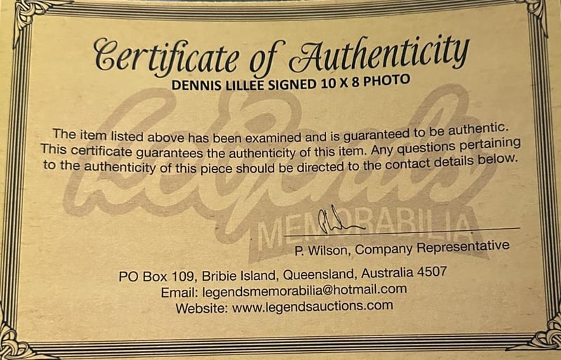 Dennis Lillee Personally Signed 8 X 10 Photo. Dennis Lillee Is A Retired Australian Cricketer Rated As The "Outstanding Fast Bowler Of His Generation". The Item Is Accompanied By A Certificate Of Authenticity.