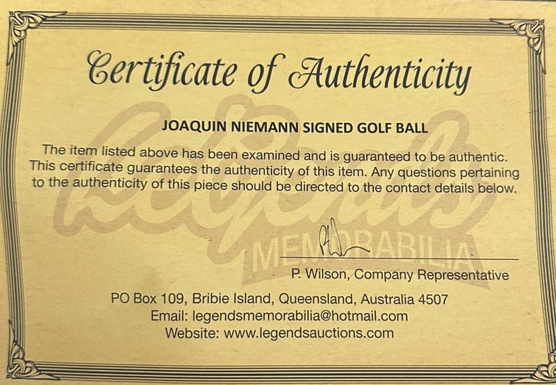A Golf Ball In Display Case Personally Signed By Joaquin Niemann. Joaquín Niemann Is A Chilean Professional Golfer Who Plays On The Liv Golf League. The Item Is Accompanied By A Certificate Of Authenticity.