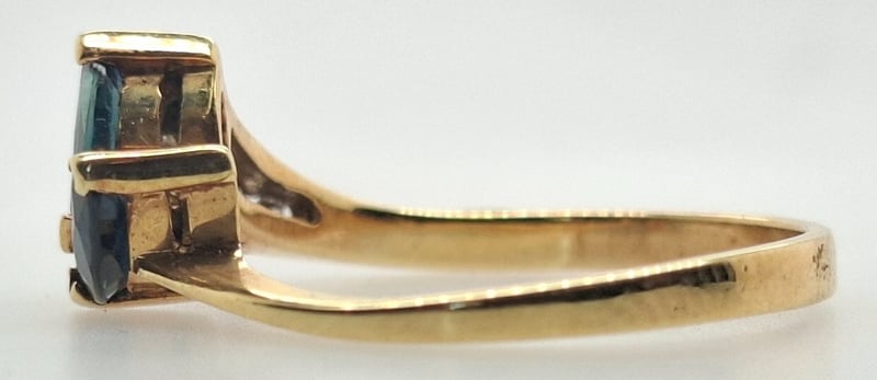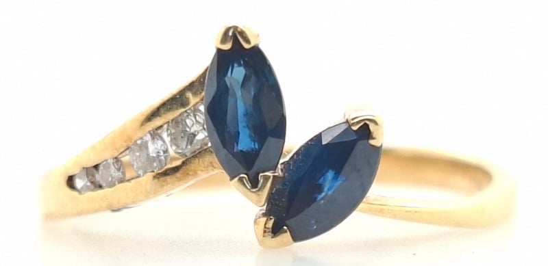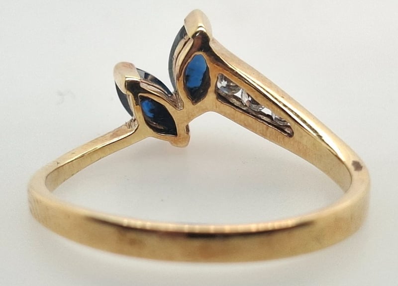 Ring Features Two Blue Marquise Cut Blue Sapphires In Centre Two Claw Settings,