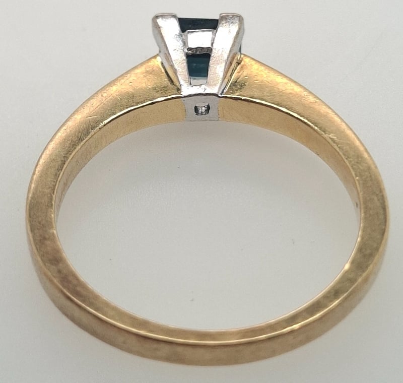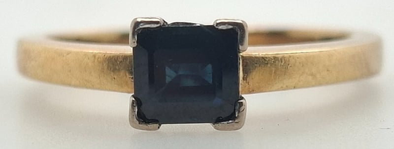 18K YELLOW GOLD SAPPHIRE RING Ring Features Square Cut Blue Sapphire In Four Claw Setting Total Item Weight: 4.07g Markings: Stamped: 750 Condition: Good - Refer To Images 585048+17