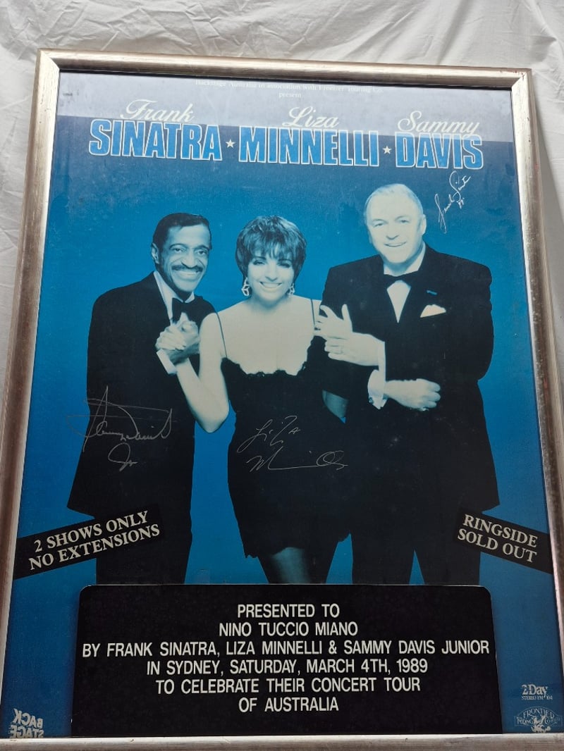 SINATRA, MINNELLI & DAVIS SIGNED CONCERT POSTER 04/03/1989 SYDNEY Item Size: Height: 96.5cm, Width: 74cm, Depth: 4cm, Weight: 6.2Kg Condition: Good - Refer To Images 12A 587770+1