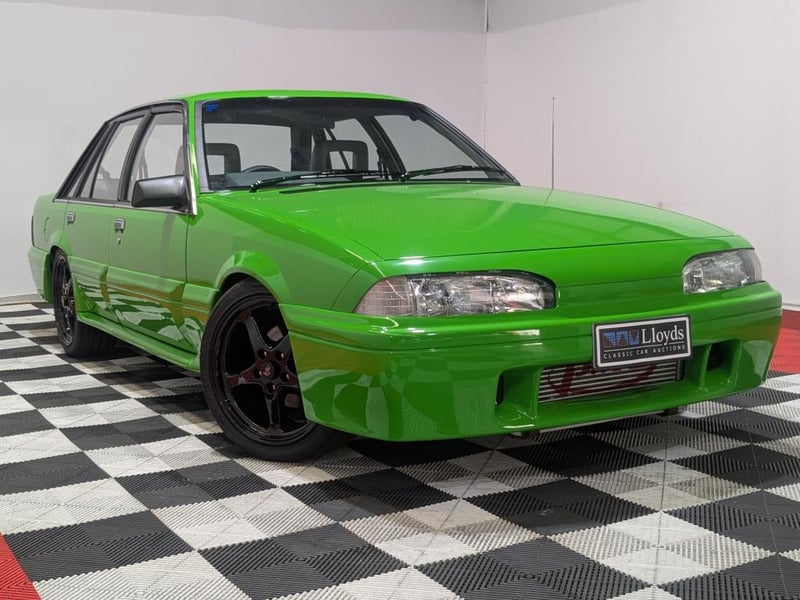 This VL Commodore is a matching-numbers example that has undergone extensive mechanical and cosmetic upgrades while retaining strong factory identity. Originally finished in Maranello Red, the vehicle was repainted green in 2001, with some minor paint preparation blemishes visible. It features a factory grey 15i interior, fully redone in 2023, and a refurbished instrument cluster.