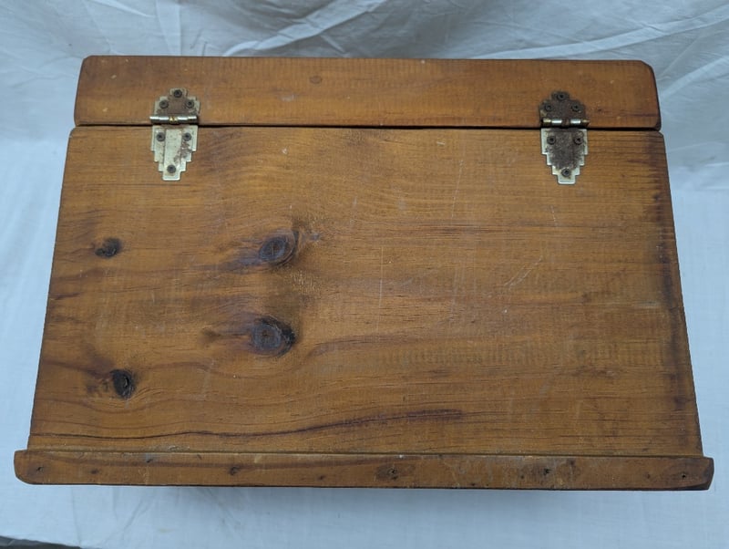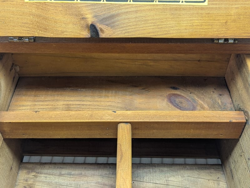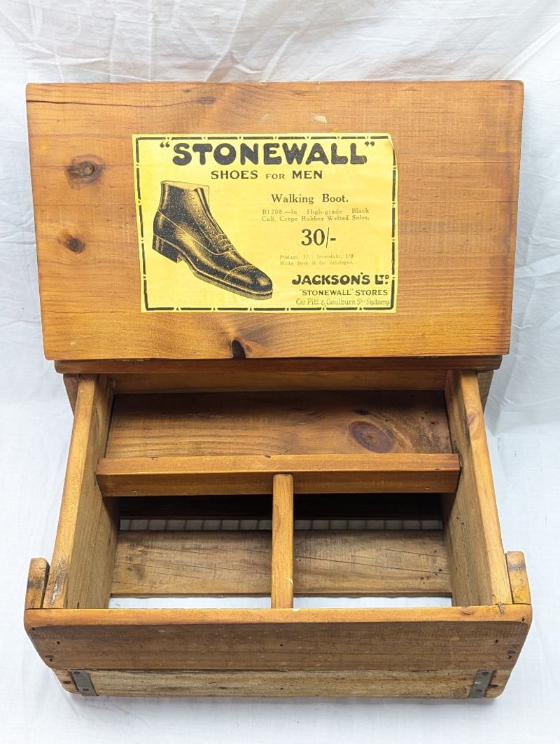 Inner Lid Features Paper Listing 'Stonewall Shoe For Men, Two Compartment With One Shelf, Flip Lid