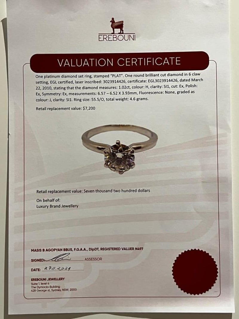 Free Express International Delivery For Orders Over $1000 Aud. Free Express Delivery With Insurance Australia Wide. Included Is A Valuation Certificate At $7,200. Resizing Available On This Ring For Just $150.