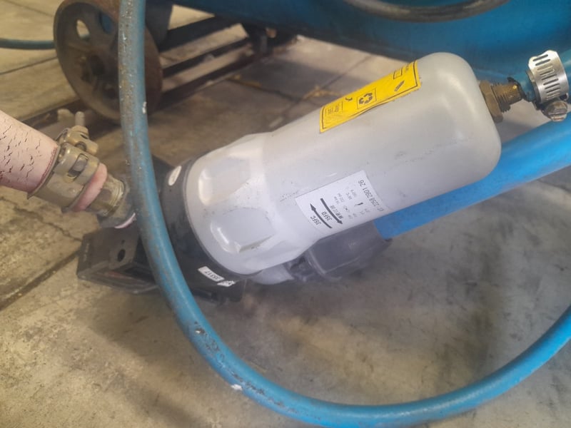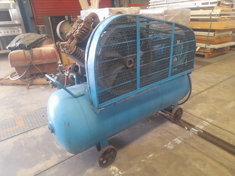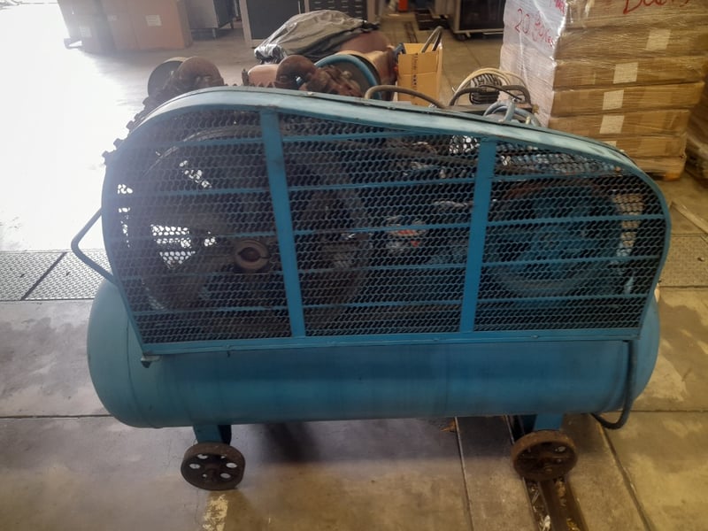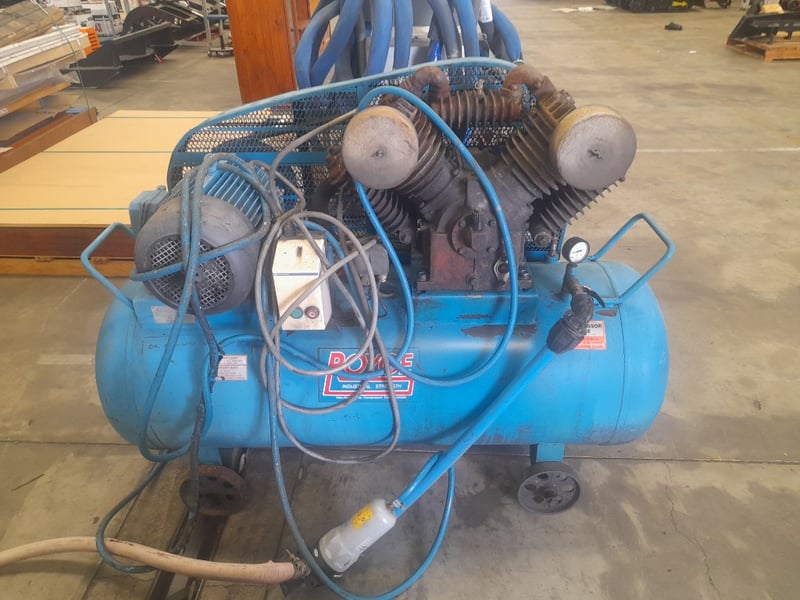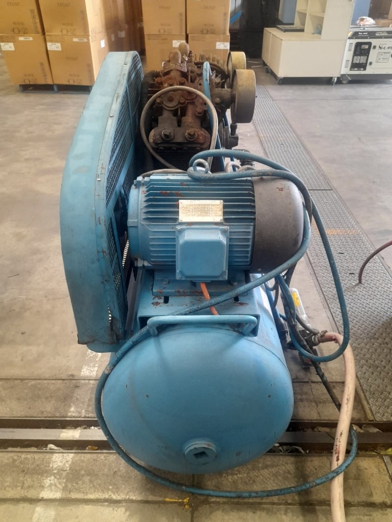 Description: 3 phase twin cyclinder workshop compressor, regulator/ water trap in working condition