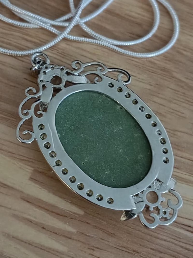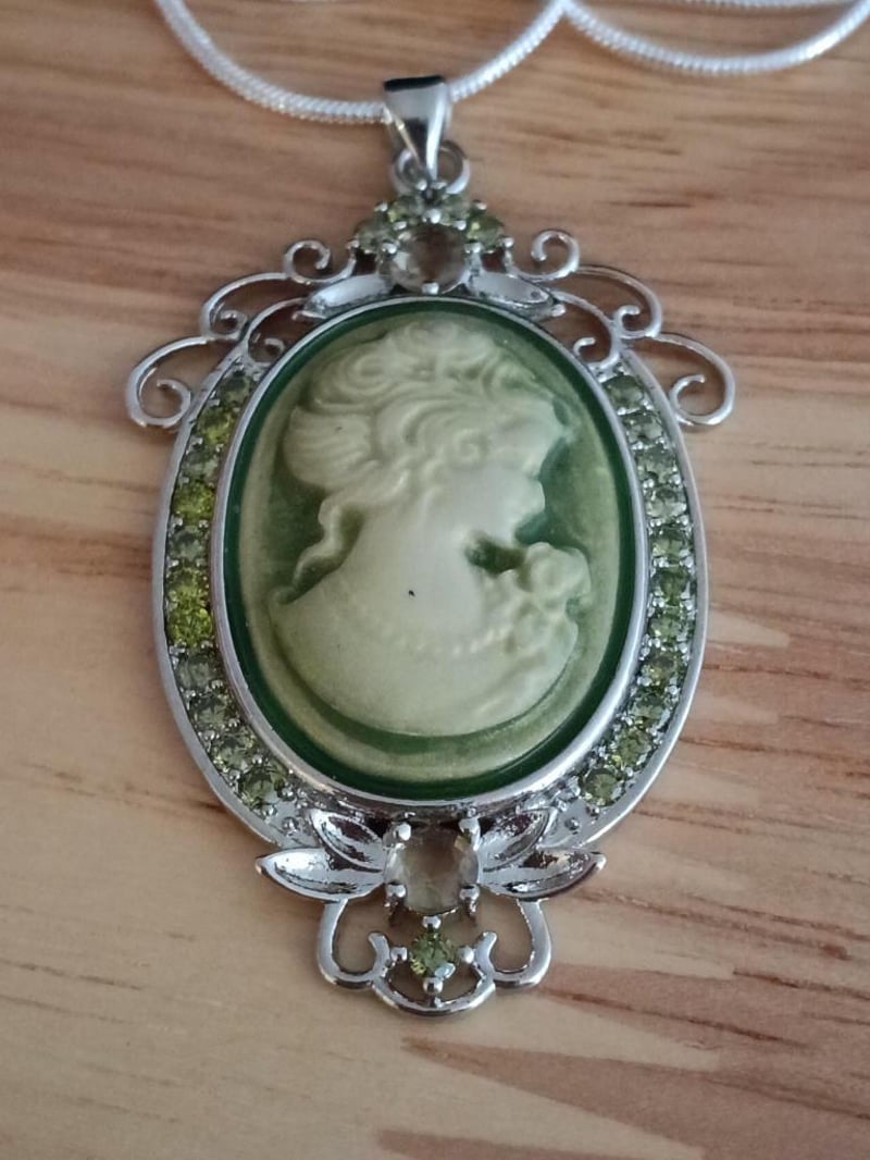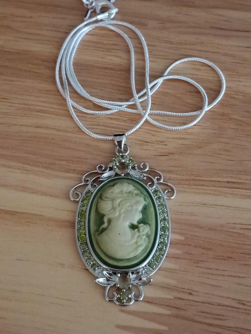 925 SILVER GREEN AND IVORY CAMEO PENDANT NECKLACE Condition: Good - Refer Images 0163019+26FC