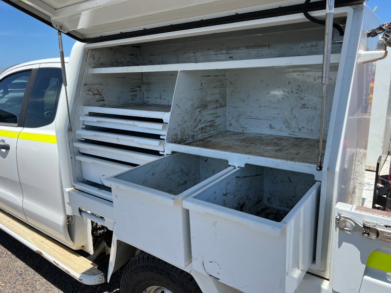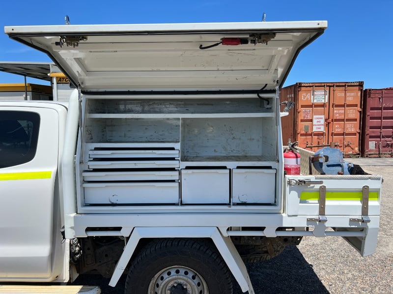 Description/Extras: Super Cab, Turbo diesel engine, Automatic Transmission, 4x4, Heavy-duty tray / tub, Steel wheels, Air conditioning, Bluetooth / USB connectivity, Cruise control, Power windows & mirrors, Tow bar, Stability & traction control, ARB Bull-Bar with LED Spot Lights, Side steps, Fully Mine Spec, Custom Built Alloy Tray with central Locking Tool Boxes, Fire Extinguisher, Near New Tyres, Flashing Light, 140L Under-Tray Fuel Tank, 40L Head-Board Fuel Tank, Two way Radio, Battery Isolation, Dash Mat, Two Keys, Log Books.