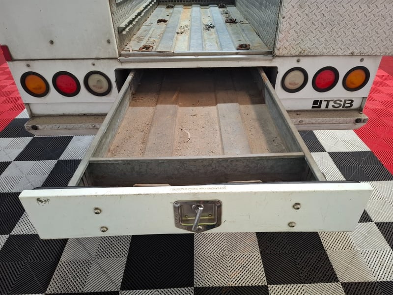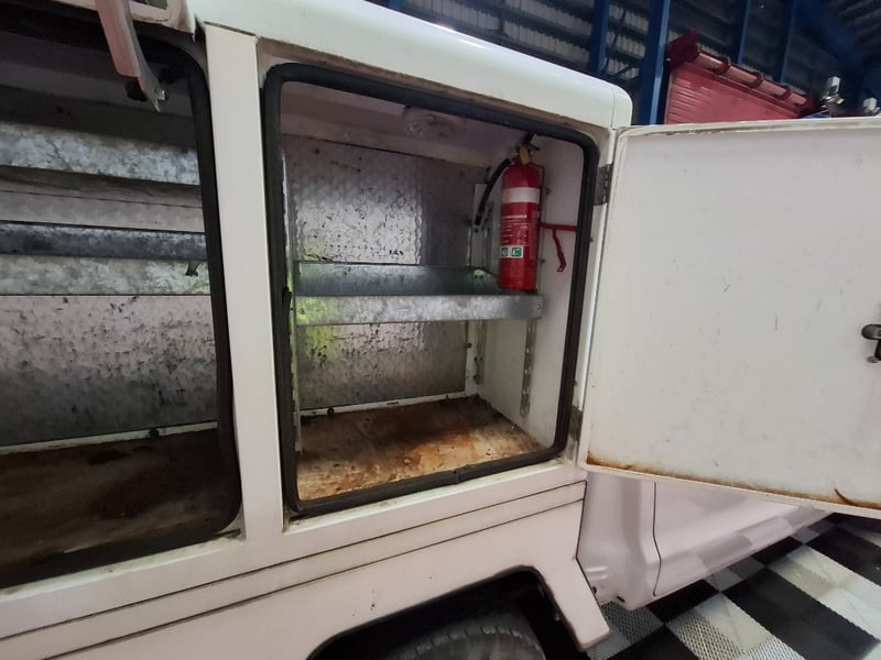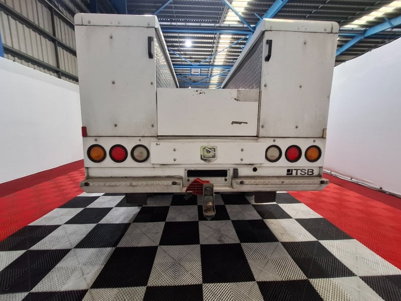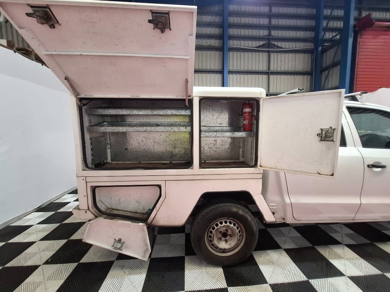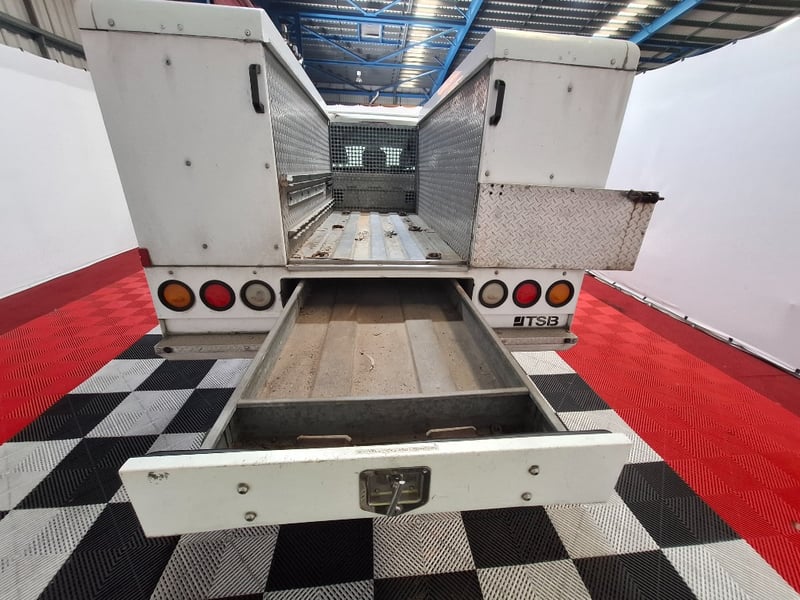 With multi media controls on steering wheel, electric side mirrors, Bluetooth, sunglasses holder, front twin cup holders, traction control, off road switch, drivers side rubber mat, seat cover on back half of rear seats, 6 large storage boxes and large drawer on TBS custom tray roof racks , Plus more. Interior has scuffs scratches and marks throughout, sunglasses hold is held closed with tape, dash is starting to fade due to sun, cleaning required. Drivers side mirror glass is missing, cab body work has scratches scuffs and stone chips dents on LHS front panel. Some small rust spots starting to appear on tray sidings, rear tow bar mounted step is half missing, rear tray drawer is hard to close.