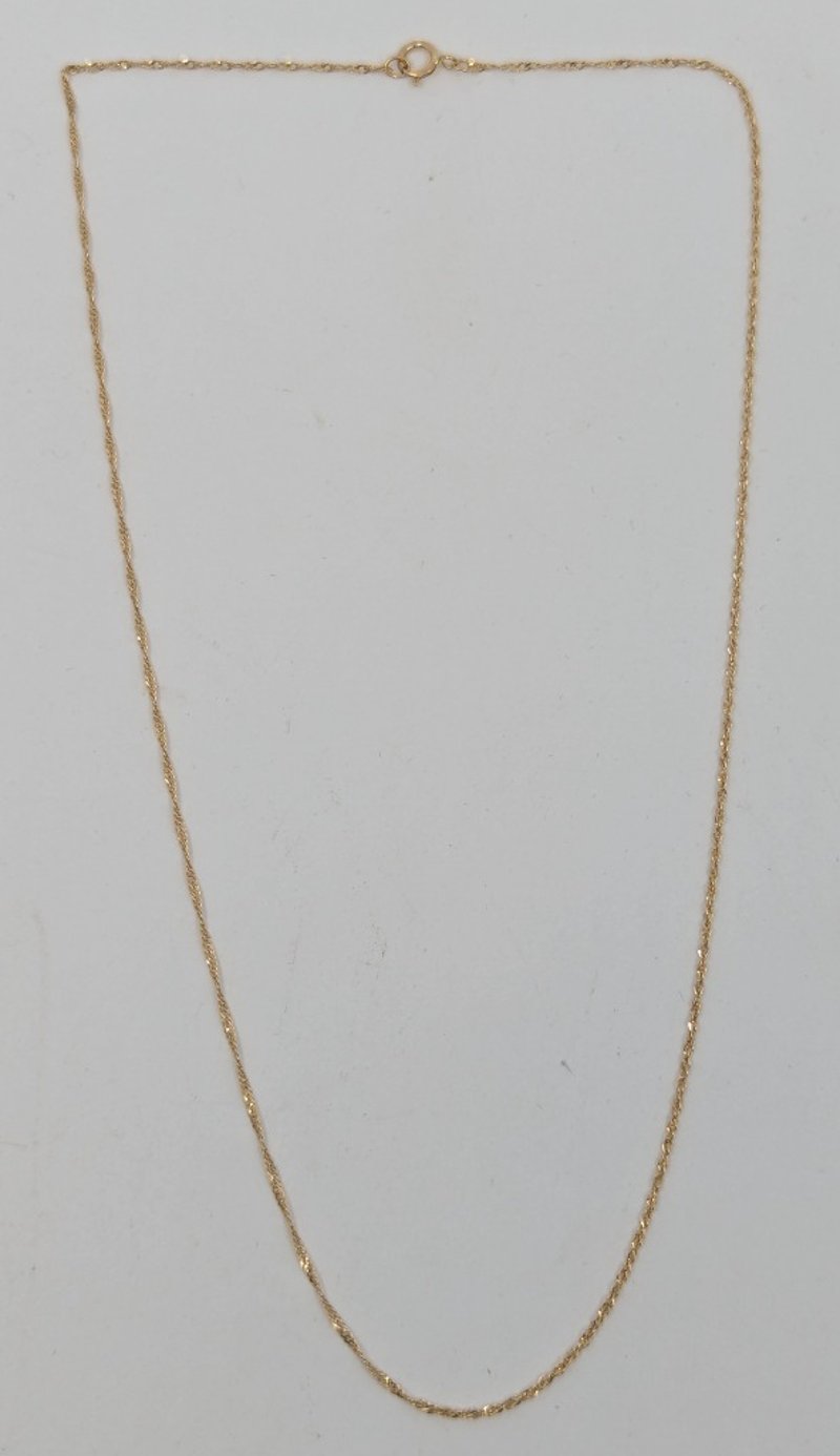 14K YELLOW GOLD CHAIN NECKLACEChain Length Approx: 40Cm (Unclasped)Total Item Weight: 0.90gMarkings: Stamped: 14KCondition: Good - Refer To ImagesVAULT587789+8