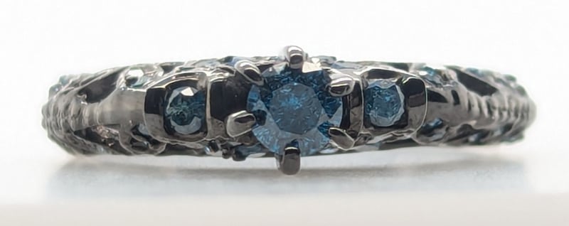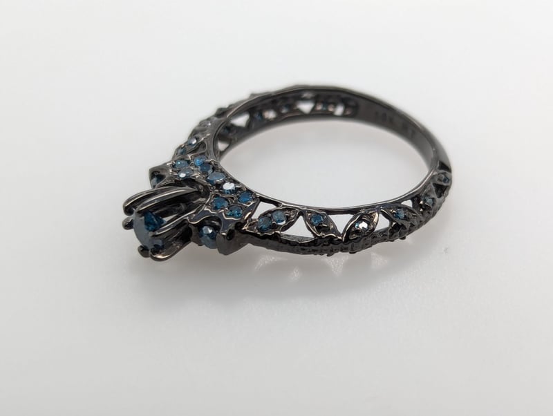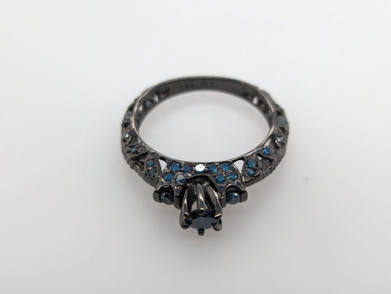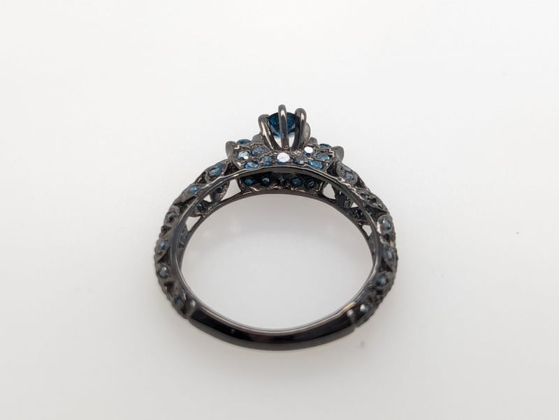 Ring Features Round Cut Blue Diamond In Centre Six Claw Setting,