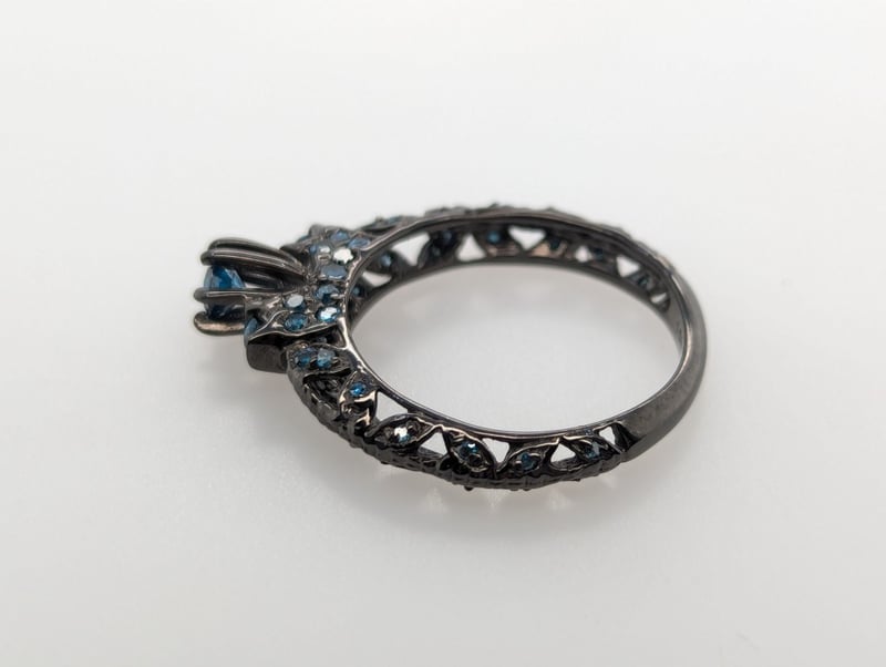 Forty-Six Round Cut Blue Diamonds Set Into Ring Band