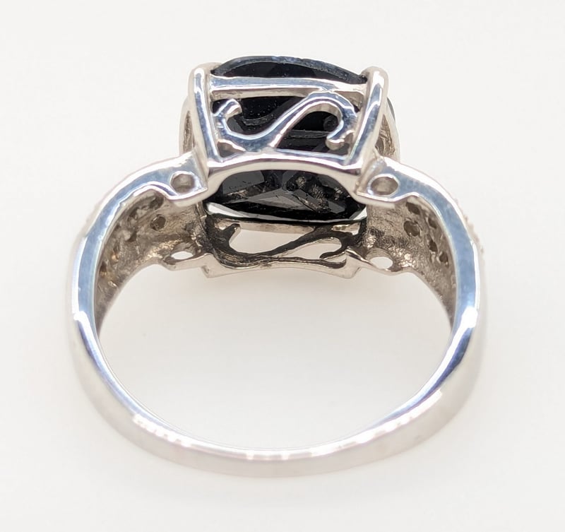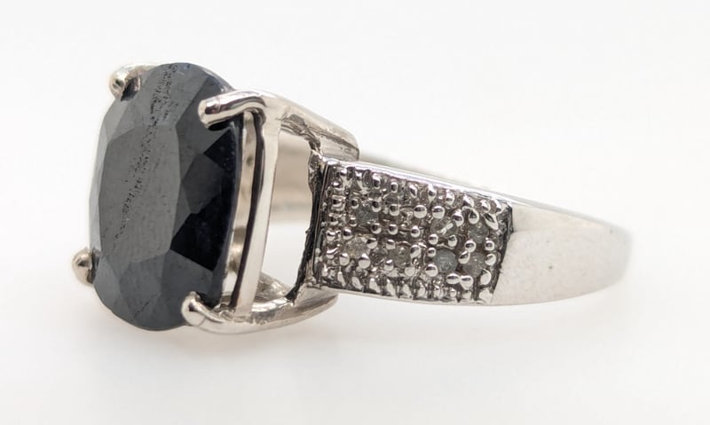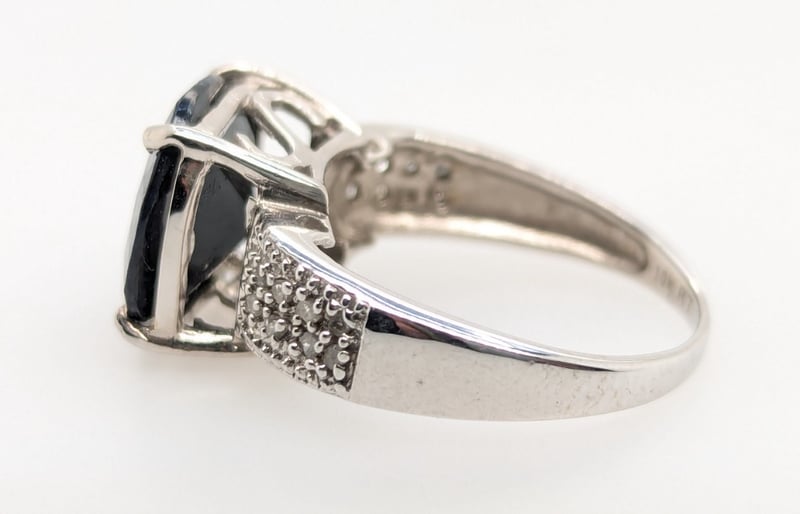 10K WHITE GOLD BLACK SPINEL AND DIAMOND RING
