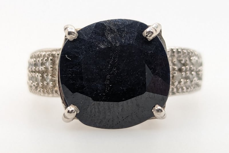 Ring Features Cushion Cut Black Spinel In Four Claw Setting,