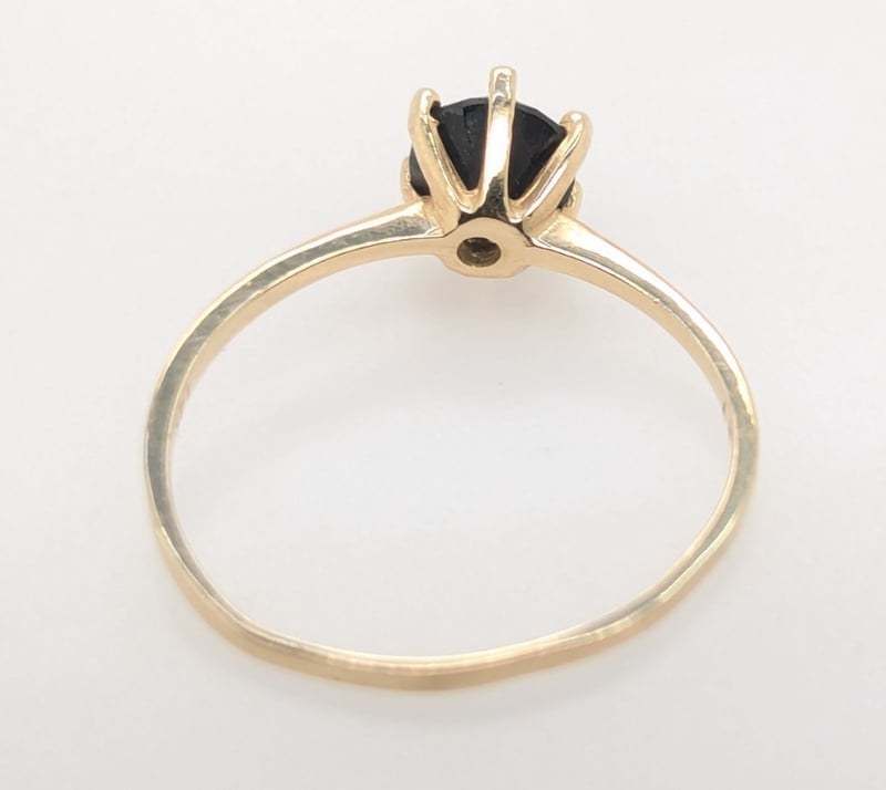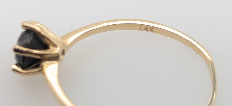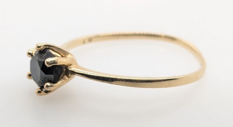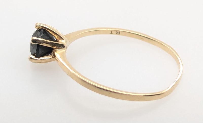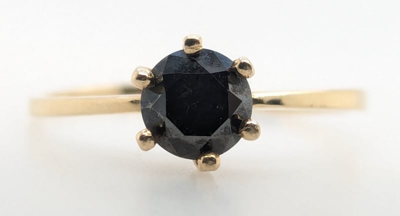 14K YELLOW GOLD MOISSANITE RINGRing Feature Round Cut Black Moissanite In Centre Six Claw SettingTotal Item Weight: 1.20gMarkings: Stamped: 14KCondition: Good - Refer To ImagesVAULT587789+14