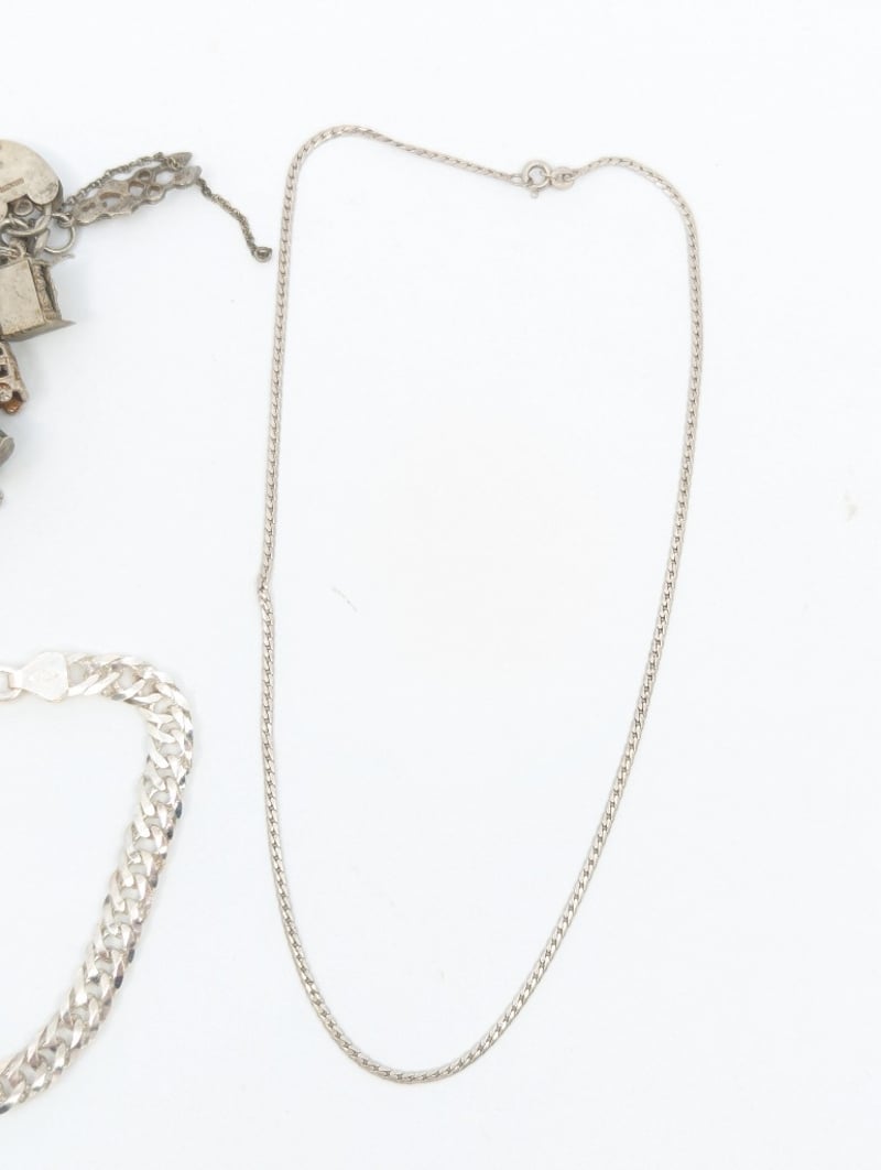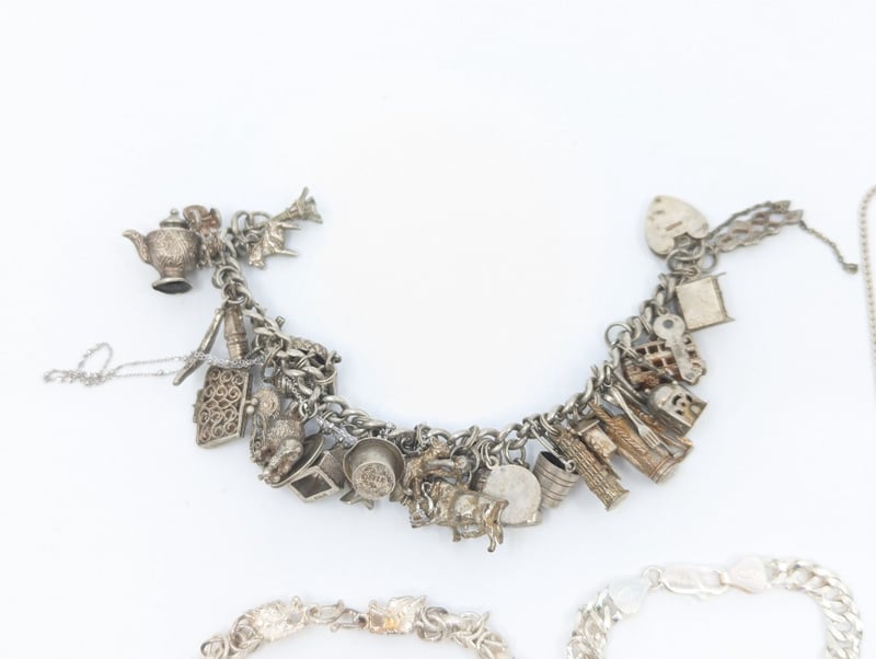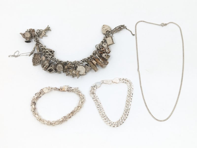 Items Include Charm Bracelet, Silver Bracelet And Necklace