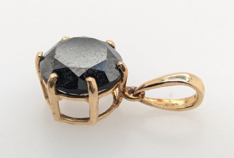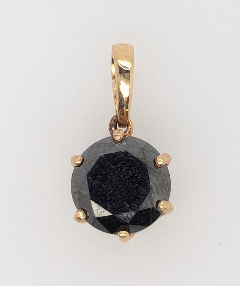 Pendant Features Round Cut Black Moissanite In Six Claw Settings